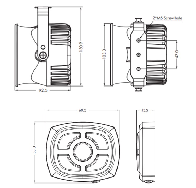 Admite luz de advertencia de hasta 8 amperios, la luz de advertencia externa funciona sincrónicamente con la sirena. Una línea de control de entrada separada permite el control individual de encendido/apagado de la luz de advertenciaAdmite micrófonos externos (opcional).